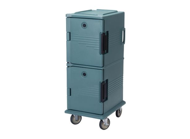 Duurzaam schuim geïsoleerde voedselcontainer geschikt voor het vervoer van warme of koude gerechten. Voorlader voor eenvoudige toegang met een luchtdichte uitneembare pakking voor een veilige afdichting. Gebruik met onderstel voor eenvoudig transport.