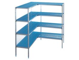 - Roestvrijstalen schap met geanodiseerd aluminium profiel en verwijderbare geperforeerde polypropyleen schappen.